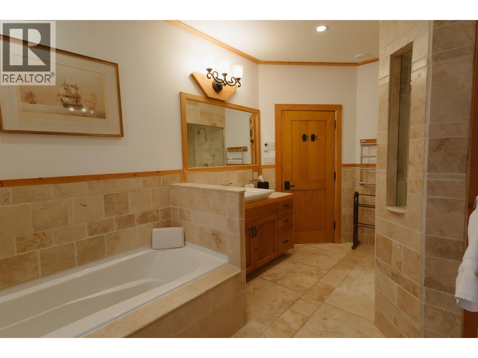 Boasting over 4000 square feet of space, this stunning four-bedroom, four-bathroom retreat blends rustic elegance with modern luxury. The home features four wood-burning fireplaces and two gas fireplaces, creating a warm and inviting atmosphere throughout. The chef’s kitchen is a true highlight of the home, featuring both an electric two-oven Aga and a propane four-oven Aga—ideal for everyday meals or gourmet cooking. Both the kitchen and downstairs kitchenette have reverse osmosis systems for pure, crisp drinking water. The outdoor living spaces are equally impressive, with beautifully landscaped grounds, a peaceful walking path, and two hot tubs. One hot tub is located on the main deck, and the other is just off the basement entrance—both offer incredible views. Other notable features include a spacious two-car garage, an automatic kick in generator, a basement with a wet bar, steam shower, and access to a glass enclosed porch. The basement could also be used as a rental, providing income opportunity. Upstairs, the master suite provides a peaceful retreat, complete with an ensuite bath and stunning views of the mountains. Whether you’re cozying up by the fireplaces, enjoying the hot tubs, or cooking in the gourmet kitchen, this home is a perfect blend of relaxation and adventure. More than just a home, this property offers a unique lifestyle in the heart of Kicking Horse Mountain Resort. Experience luxury and nature in perfect harmony. (id:4069)